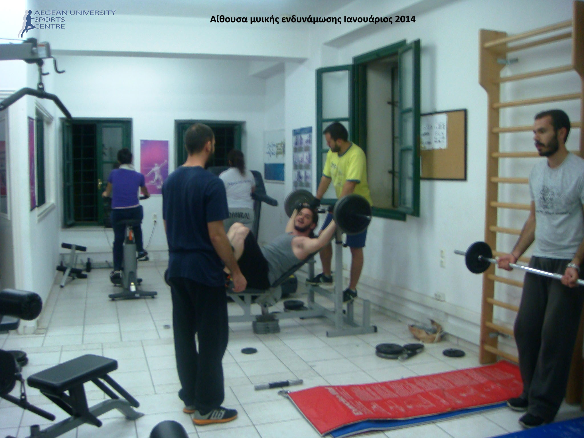 Η αίθουσα μυικής ενδυνάμωσης βρίσκεται στο κτίριο Χατζηγιάννη, Πατριάρχου Γρηγορίου 13, 1ος όροφος και λειτουργεί σύμφωνα με το πρόγραμμα:
